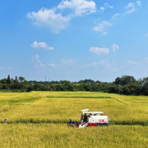 金秋时节,瓜果飘香、田野金黄,农民抢抓晴好天气,收获劳动果实。
