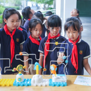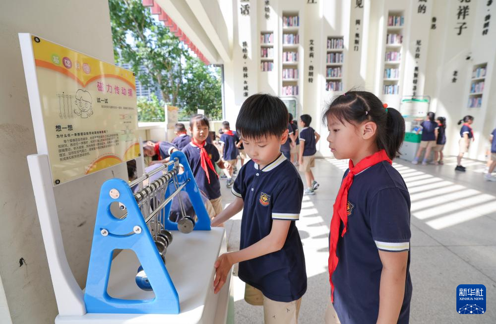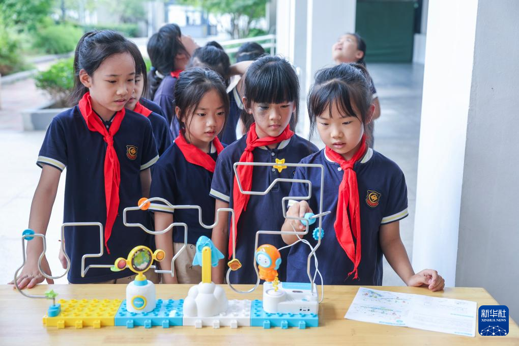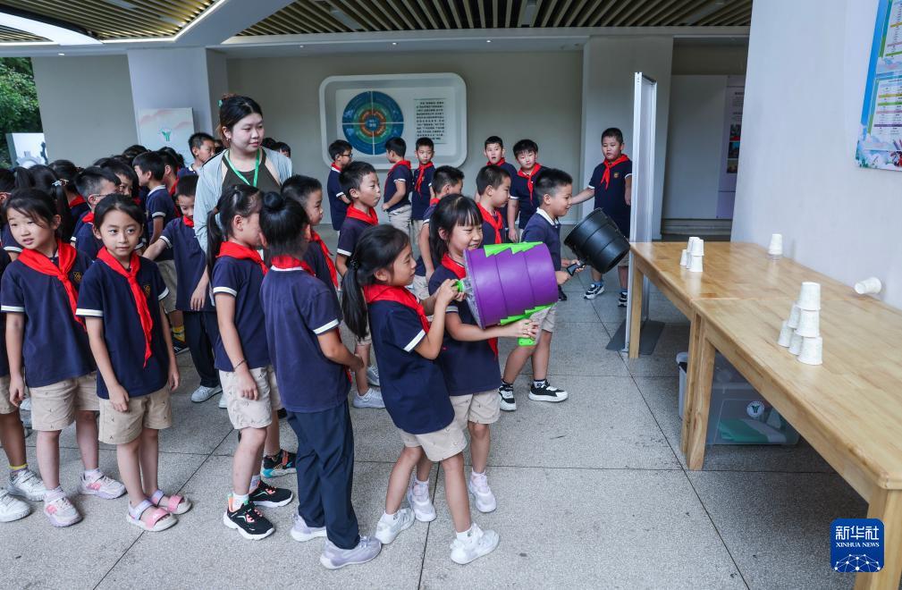 9月18日,在杭州临安区青山湖科技城第二小学科普宣传周活动现场,学生们体验科学小游戏。