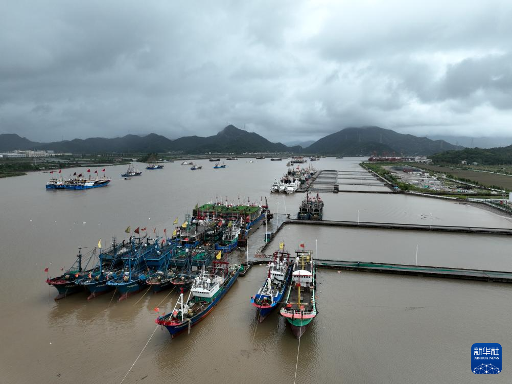 9月19日,渔船在台州市三门县健跳镇一处避风港停泊(无人机照片)。