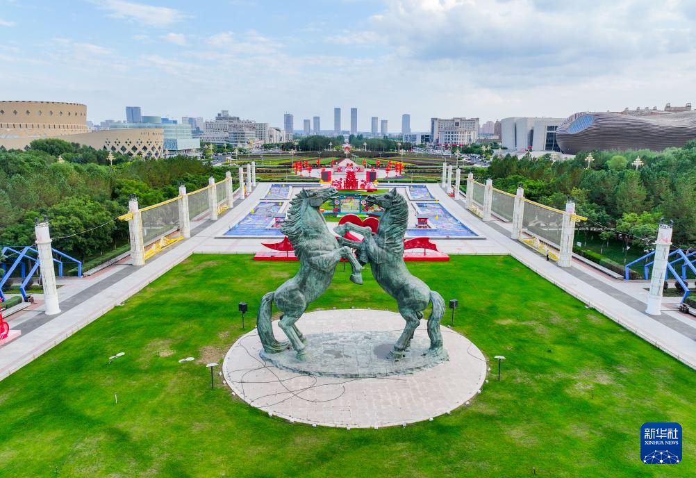 这是9月20日拍摄的康巴什双驹广场上的雕塑。
