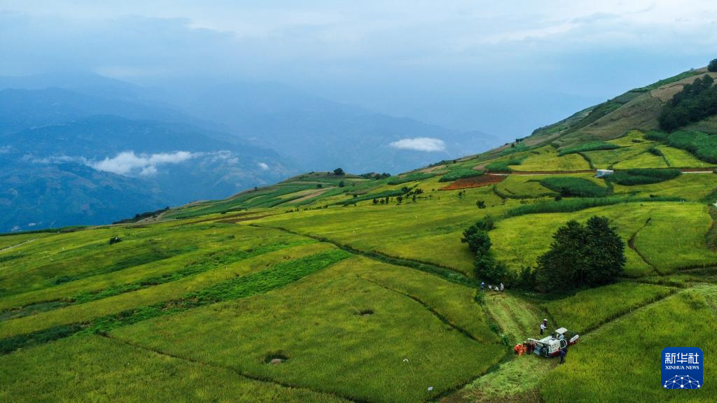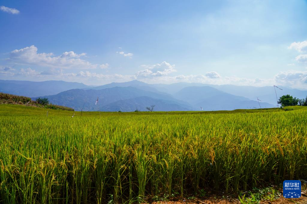 近日,位于云南省红河哈尼族彝族自治州个旧市卡房镇的旱地优质稻种植示范区迎来收获季。当地开展民俗表演、割谷比赛等活动庆祝丰收。