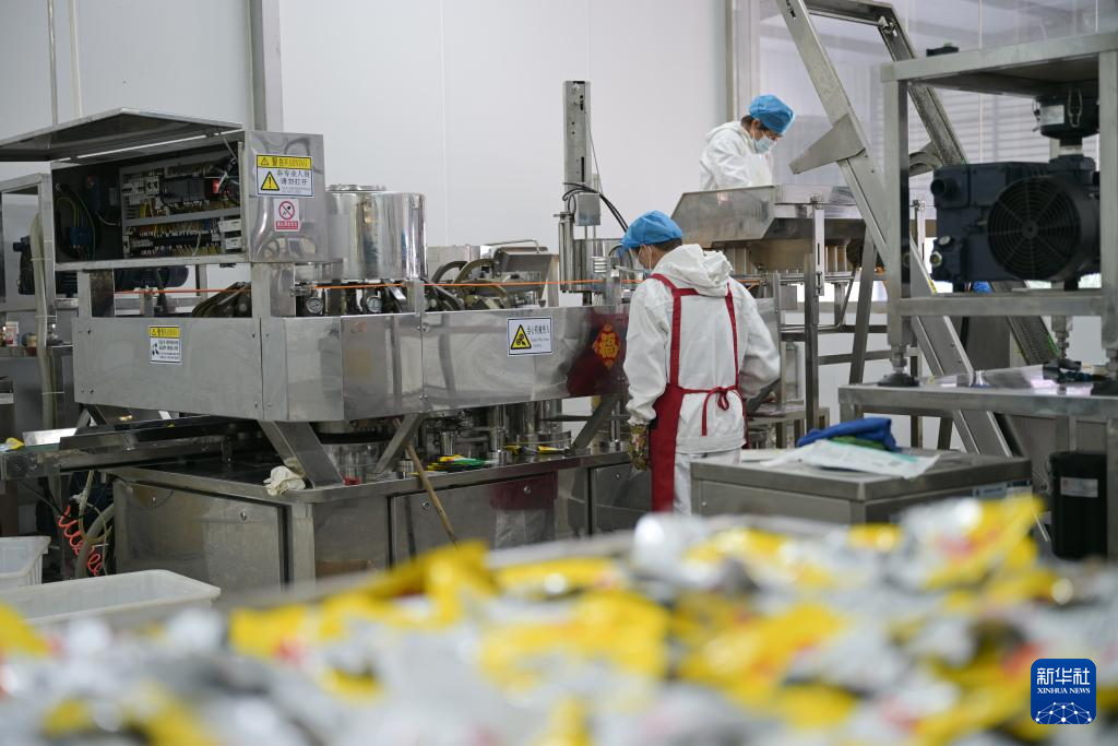 9月21日,在山东省滕州市张汪呱呱鸭业股份有限公司,工人们在给鸭制品进行充氮包装。