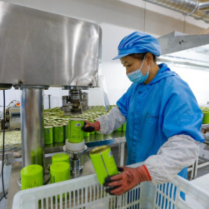9月21日,在山东滕州传化公路港内,一家茶叶企业的员工在包装茶叶。