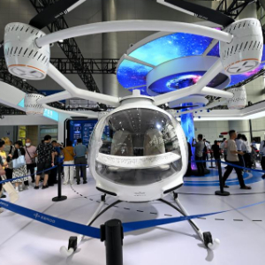9月20日,在2024世界制造业大会上,人们了解一款载人级无人驾驶电动垂直起降航空器。