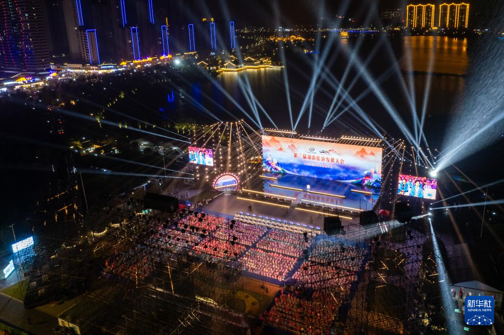 9月21日,第三届湖南旅游发展大会在衡阳酃湖公园开幕(无人机照片)。