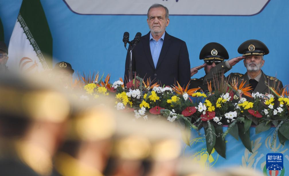9月21日,在伊朗首都德黑兰,伊朗总统佩泽希齐扬出席阅兵式。