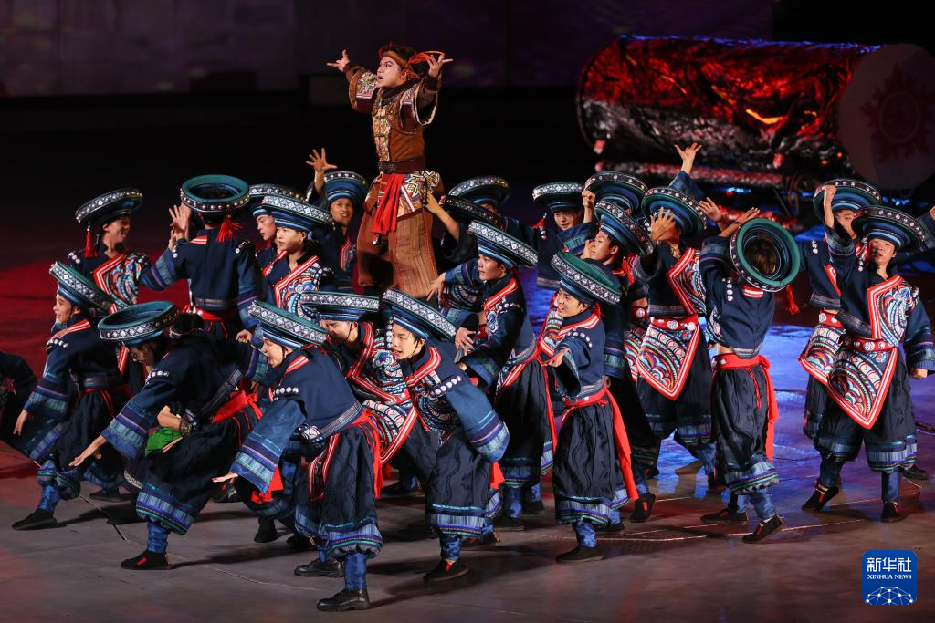 9月20日,演员在贵州省雷山县大塘镇表演苗族歌舞诗剧《仰欧桑》。