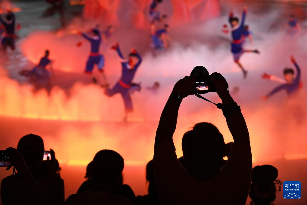 9月20日,游客在贵州省雷山县大塘镇观看苗族歌舞诗剧《仰欧桑》。