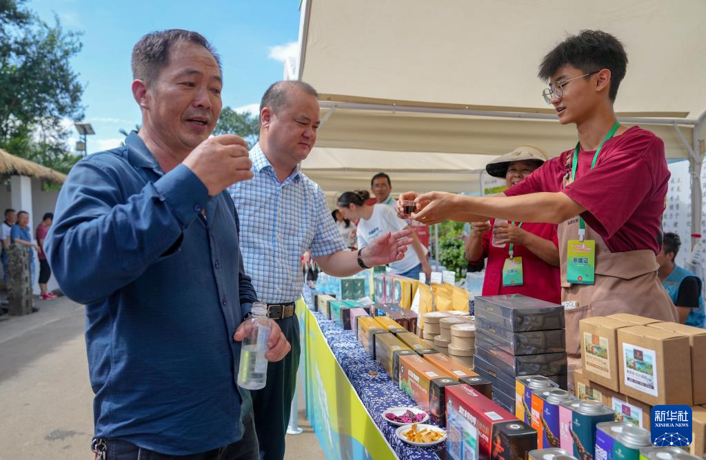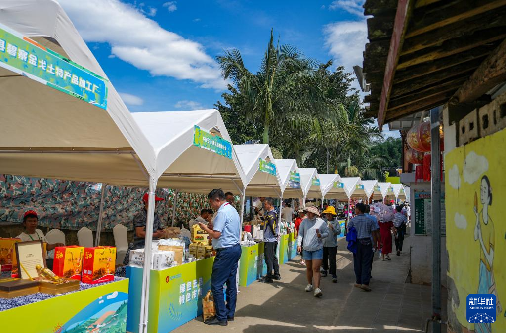 9月22日,在云南省保山市龙陵县龙江乡举行的第七个中国农民丰收节云南省主场活动现场,人们在农产品展示区参观、购物。