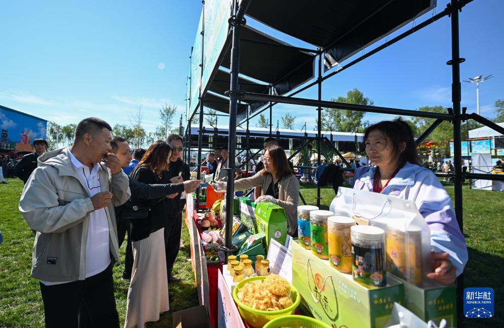 9月22日,在天津市武清区南蔡村镇天民田园,市民在2024年天津市中国农民丰收节主会场活动现场选购特色农产品。