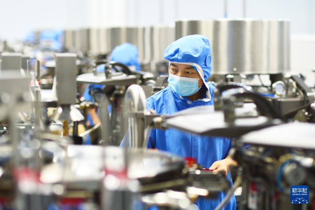 9月21日,滕州市集索镇山东启腾生物科技有限公司的工人在真空封装机前作业。