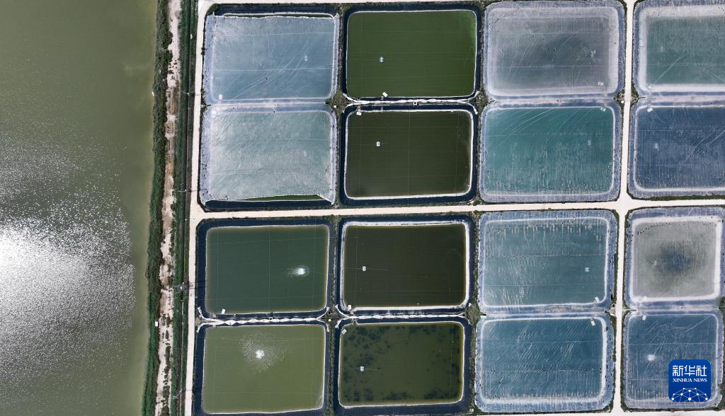 这是9月19日拍摄的位于宁夏银川市贺兰县常信乡谭渠村的蓝湾生态园南美对虾养殖基地(无人机照片)。