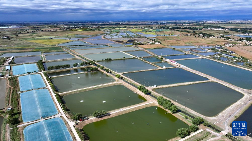 这是9月20日拍摄的位于宁夏银川市贺兰县立岗镇兰丰村的晶诚水产养殖基地(无人机照片)。