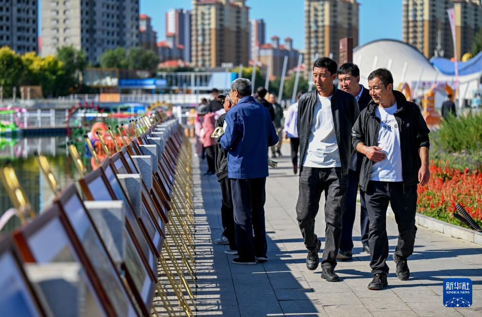9月22日,市民在参观丰收节上展出的摄影作品。