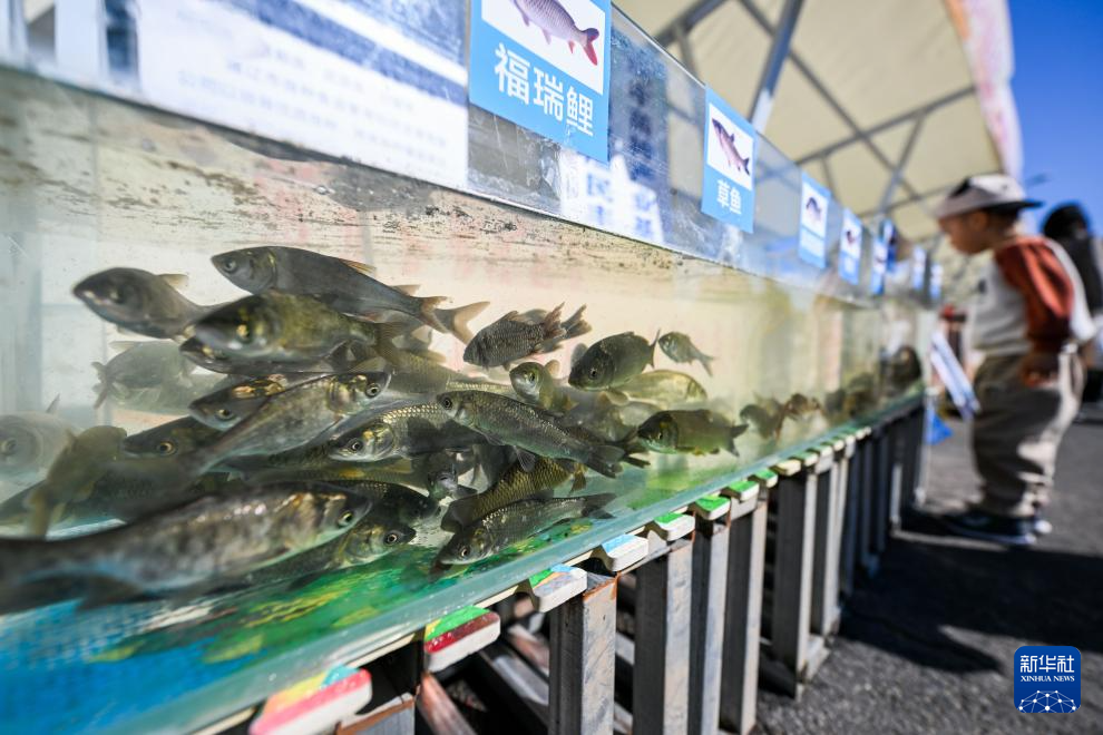 9月22日拍摄的丰收节上展示的各类水产。