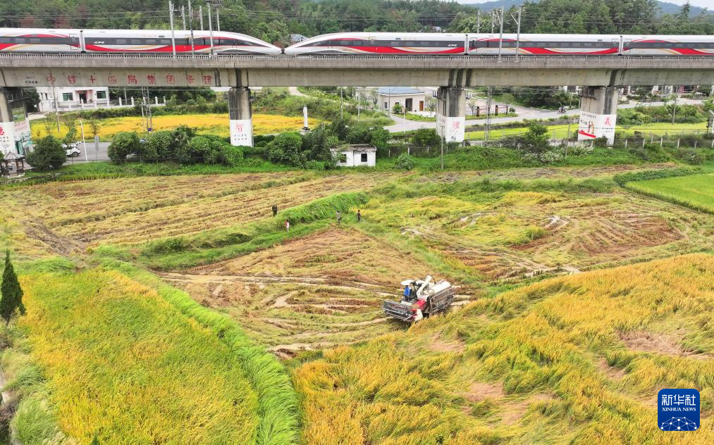 9月22日,农机手驾驶收割机在湖北武汉江夏区法泗街道大路村收割制种水稻。