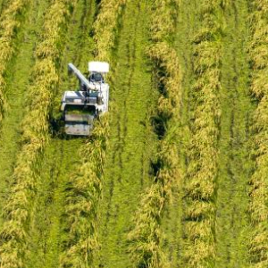 9月22日,农机手驾驶收割机在江苏省泰州市海陵区红旗街道收割制种水稻(无人机照片)。