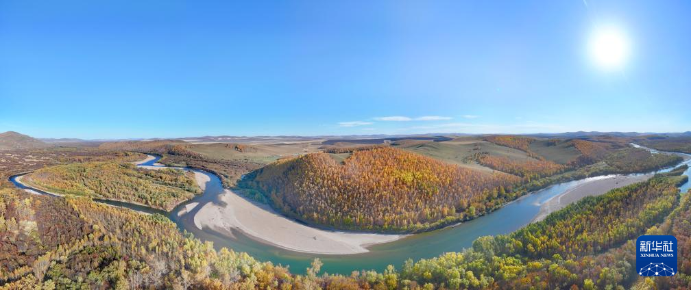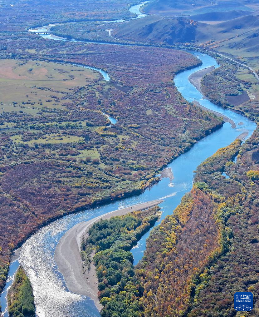 9月21日拍摄的内蒙古呼伦贝尔额尔古纳湿地秋景(无人机照片)。