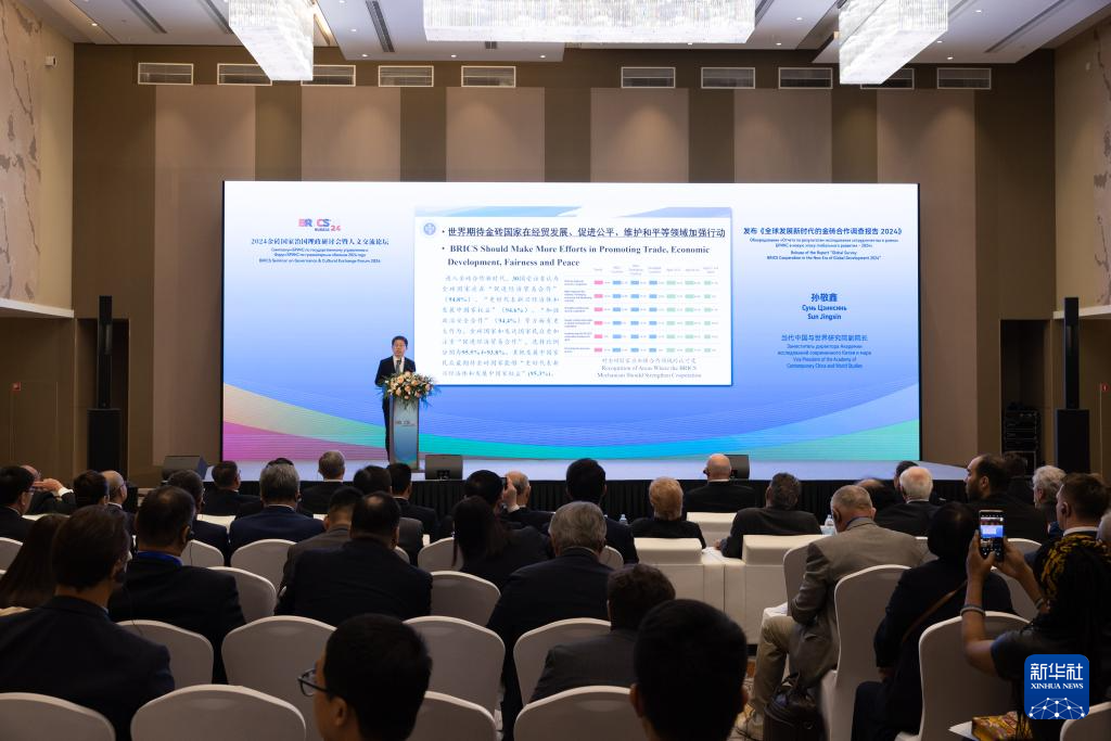 9月23日,在俄罗斯首都莫斯科,《全球发展新时代的金砖合作调查报告2024》专题报告在论坛上发布。