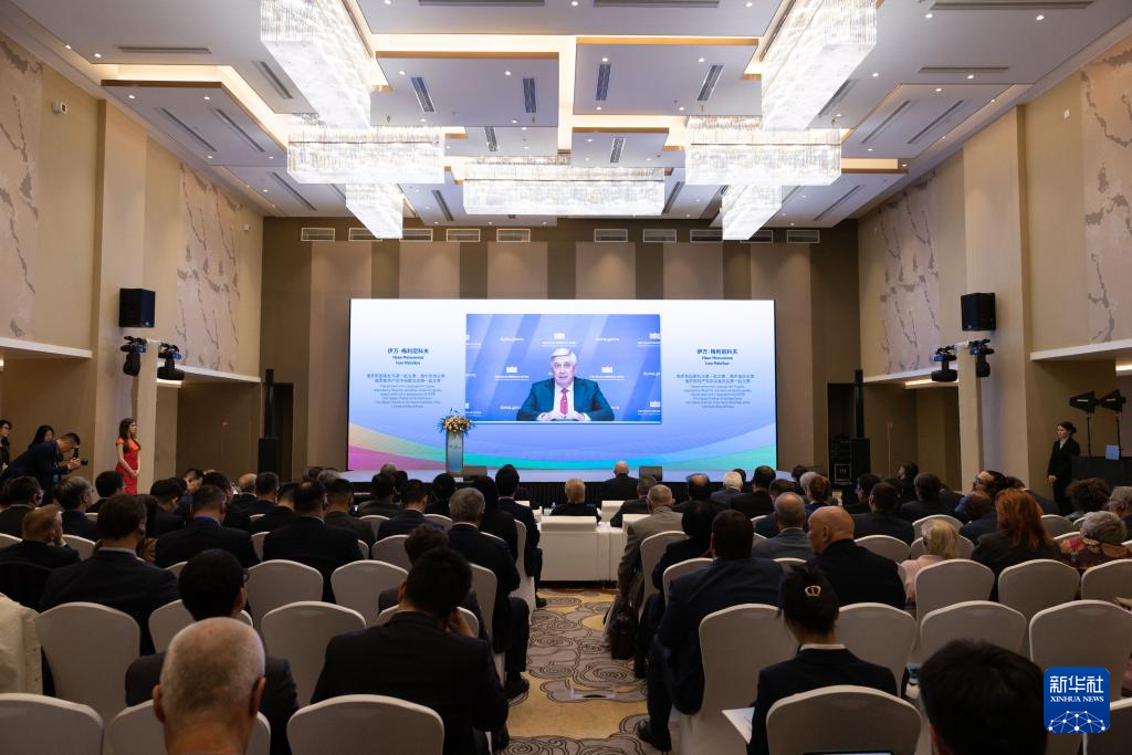 9月23日,在俄罗斯首都莫斯科,俄罗斯国家杜马第一副主席、俄中友好协会主席伊万·梅利尼科夫在论坛上发表视频讲话。