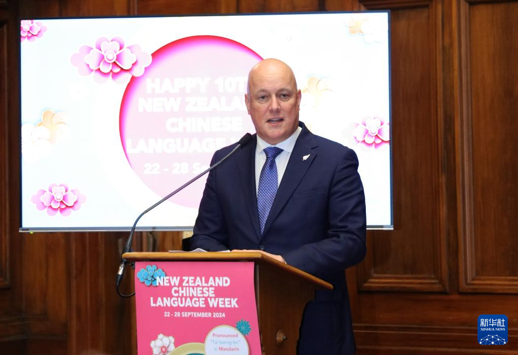 9月23日,在新西兰惠灵顿,新西兰总理拉克森在2024年新西兰中文周开幕招待会上致辞。