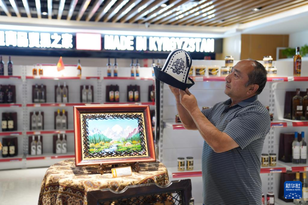 这是新疆喀什跨境电商进出口商品展示交易中心内的吉尔吉斯斯坦商品贸易之家(9月19日摄)。