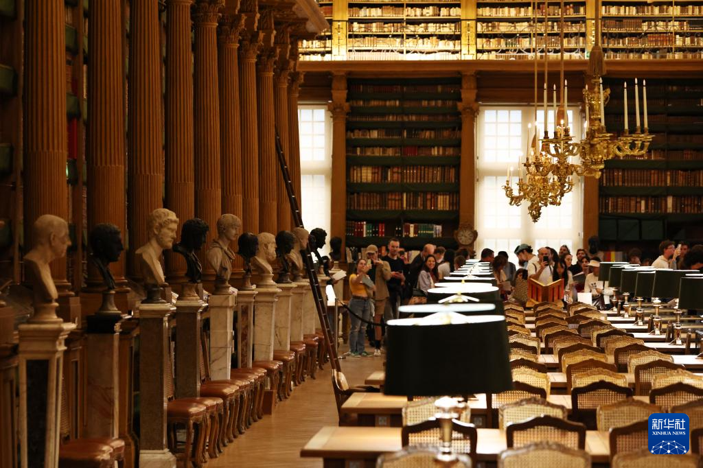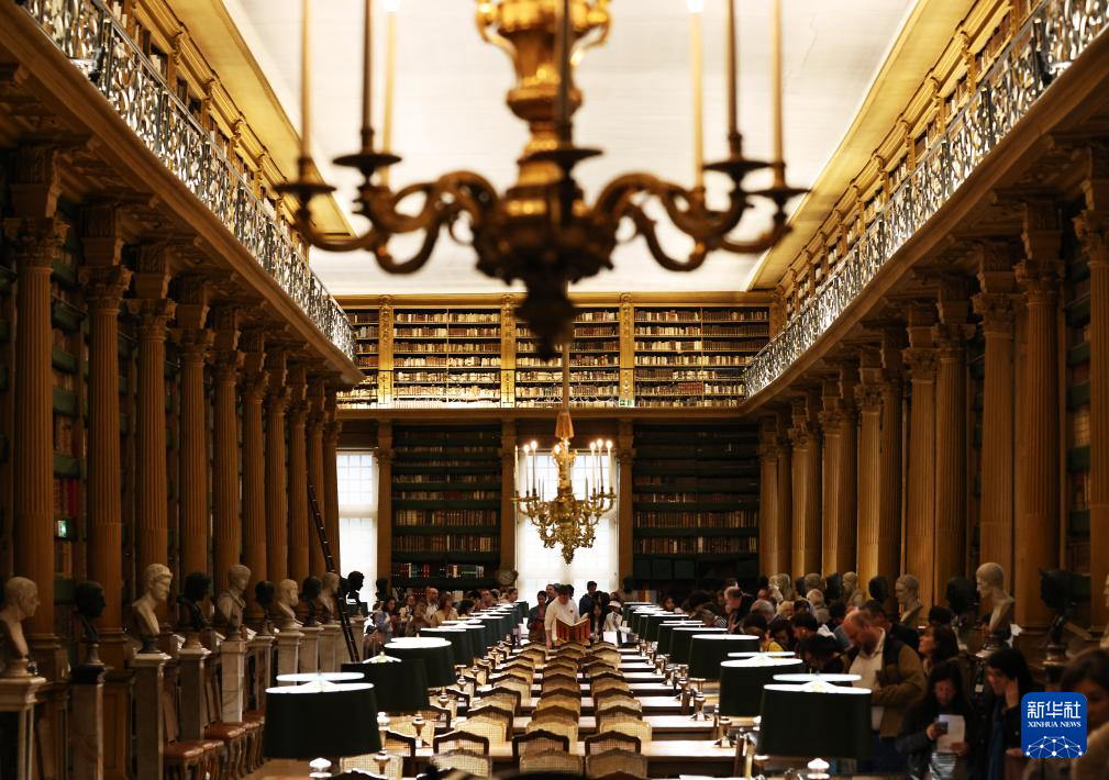 9月22日,人们在位于法国巴黎的法兰西学院内的马扎然图书馆参观。