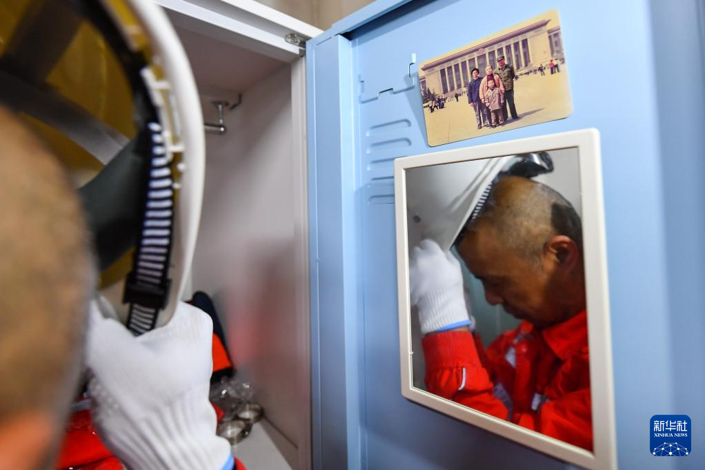 9月17日中秋节,结束一天工作的郑建国在生活楼区域与在陆地的妻子和孩子视频通话。新华社发(杜鹏辉摄)pagebreak