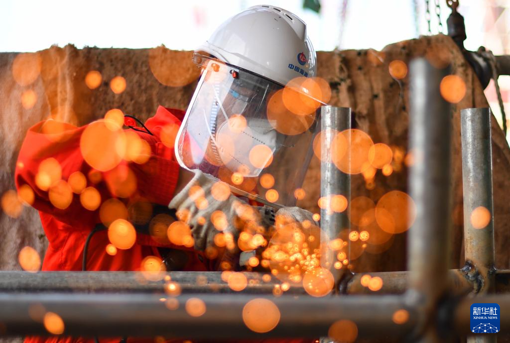 9月17日,在渤海油田曹妃甸6-4油田海上平台,郑建国在制作工件。新华社发(杜鹏辉摄)pagebreak