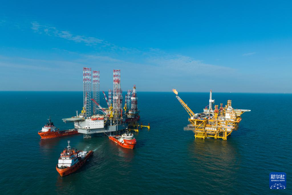 这是9月17日拍摄的郑建国所在的渤海油田曹妃甸6-4油田海上平台全景(无人机照片)。新华社发(杜鹏辉摄)pagebreak