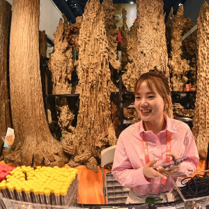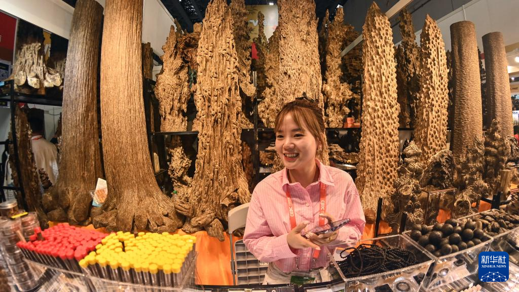 9月24日,在南宁国际会展中心越南馆,一名参展商在推销沉香木。