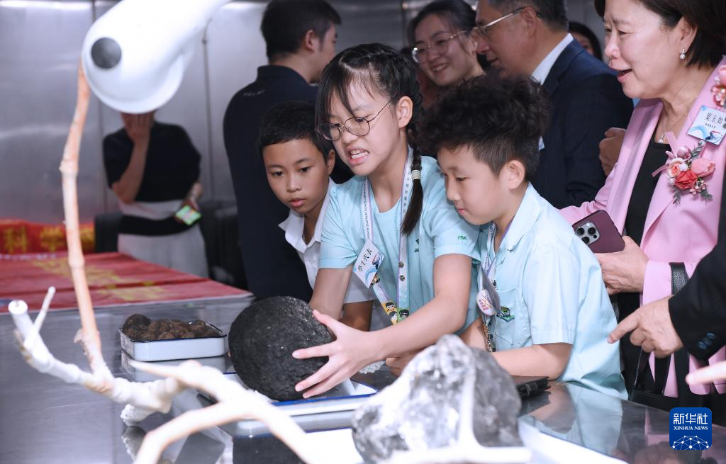 9月24日,香港小学生代表在“深海一号”远洋科考船上参观地质实验室。