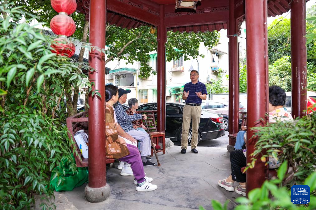 9月24日,潘守卫(站立者)在上城区紫阳街道太庙社区向社区居民讲述历史故事。