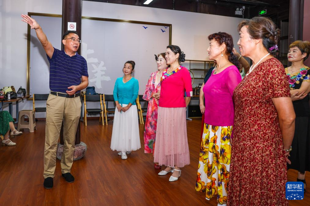 9月24日,潘守卫(左一)在上城区紫阳街道上羊市街社区指导社区居民开展文化活动。