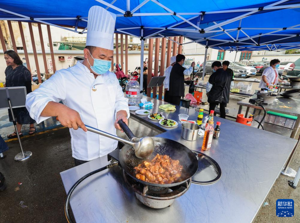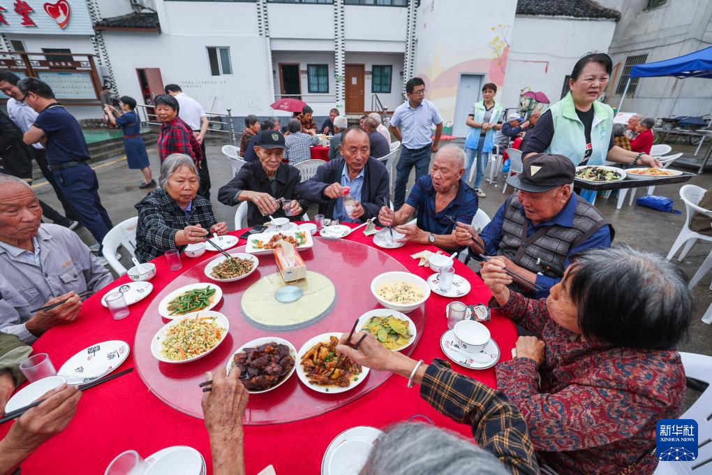 当日,浙江诸暨市东白湖镇乐龄中心开展迎国庆爱心食堂厨艺大赛及敬老宴活动。东白湖镇各村爱心食堂的厨师和志愿者们烧制拿手菜肴,近百名老人围坐品尝,现场还开展了戏剧表演、义诊、义务理发等活动,将贴心服务送到老人身边。