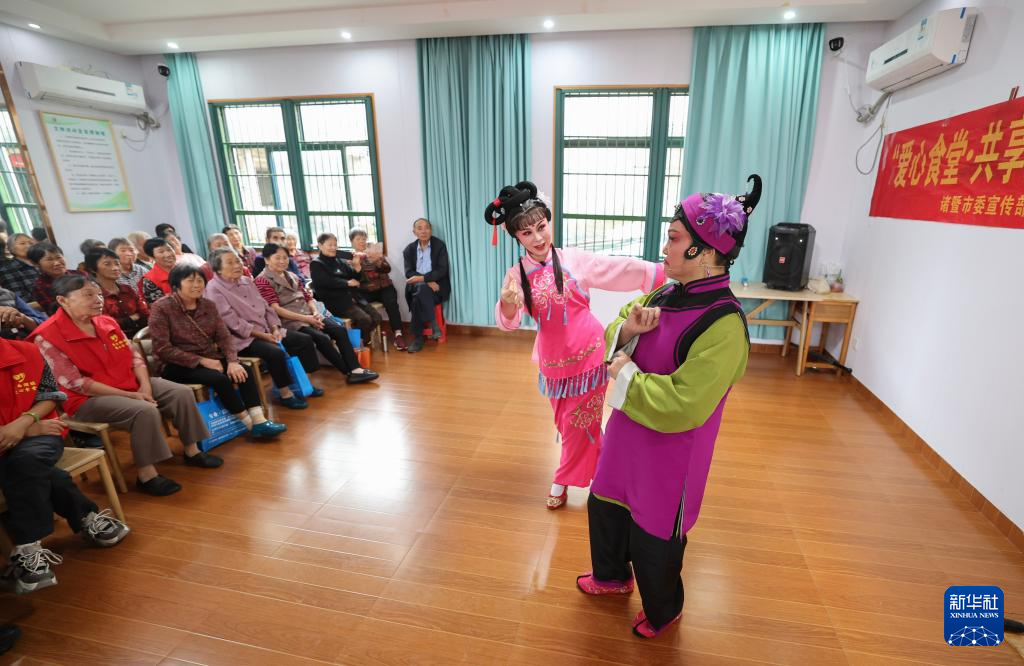 9月24日,老人们在东白湖镇乐龄中心观看戏剧表演。
