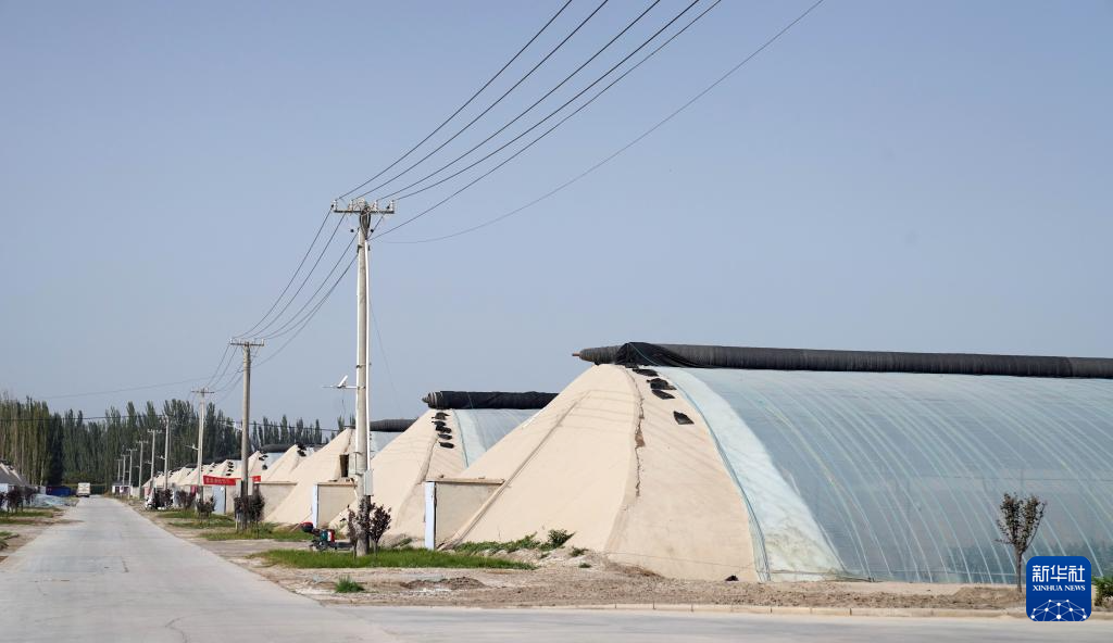 这是新疆喀什地区疏勒县郭牌西瓜种植培训基地的日光温室(9月21日摄)。