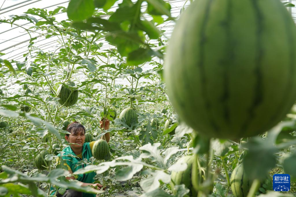 9月21日,一名员工在新疆喀什地区疏勒县郭牌西瓜种植培训基地工作。