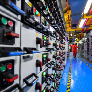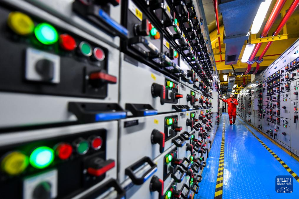 9月25日,工人在渤海油田海上作业平台配电间巡检。