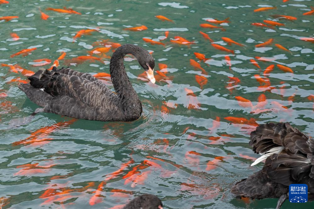 这是9月24日拍摄的宝清县翡翠湖矿坑公园内的黑天鹅。