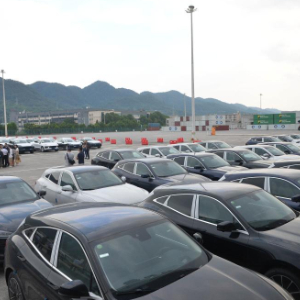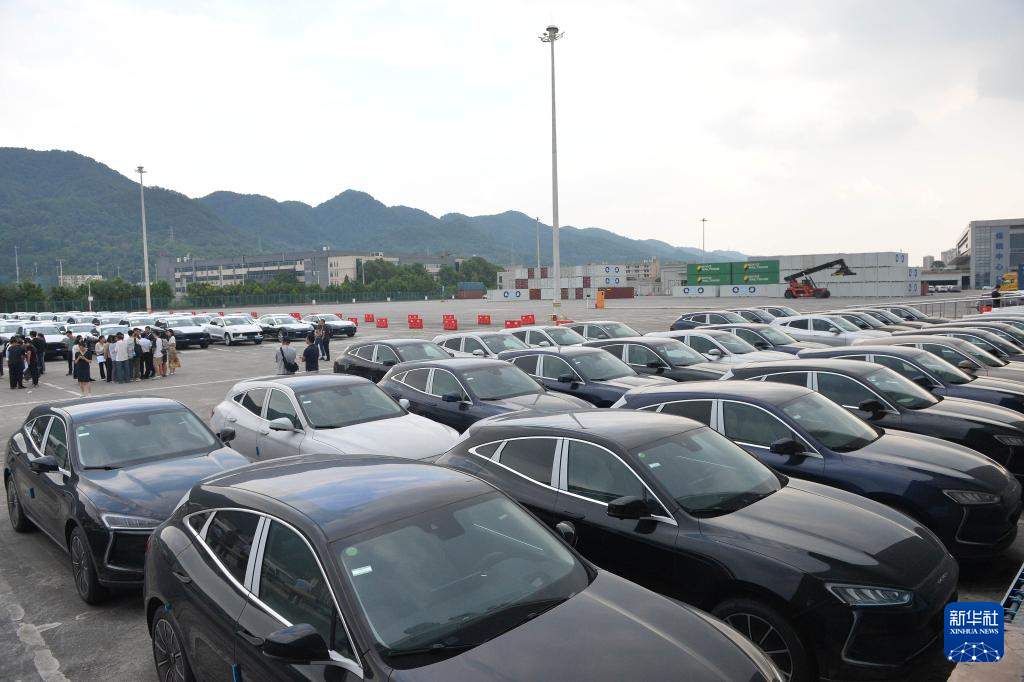 这是9月23日拍摄的重庆国际物流枢纽园区内整齐排列的汽车。