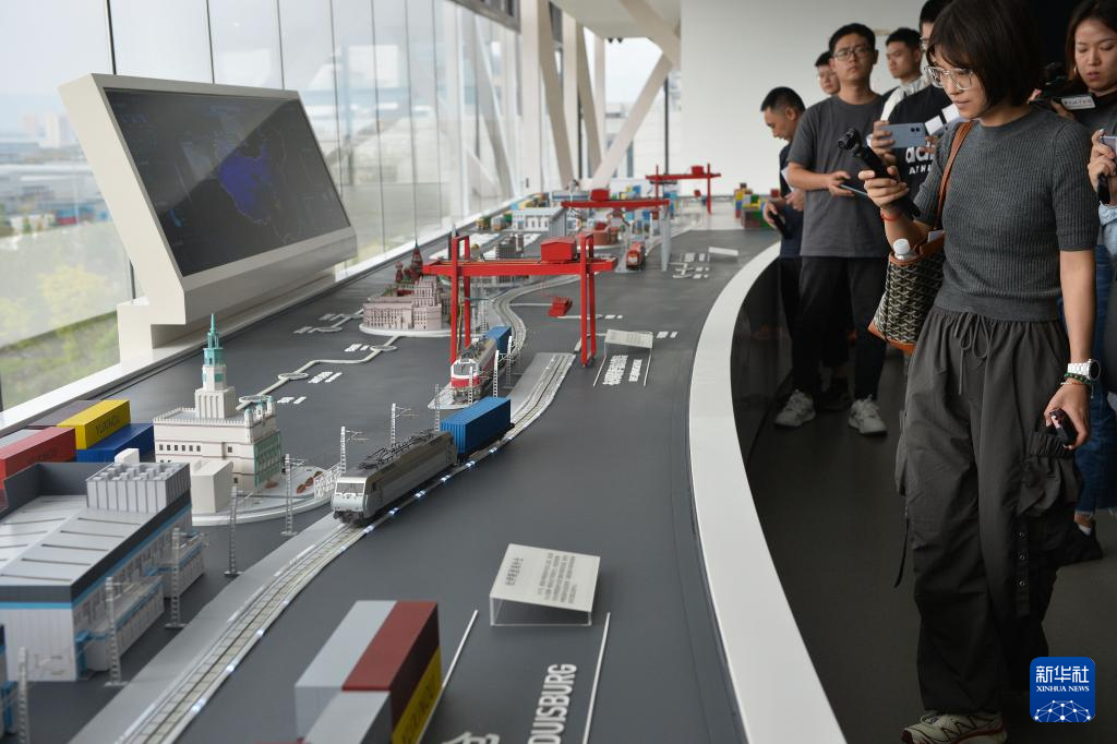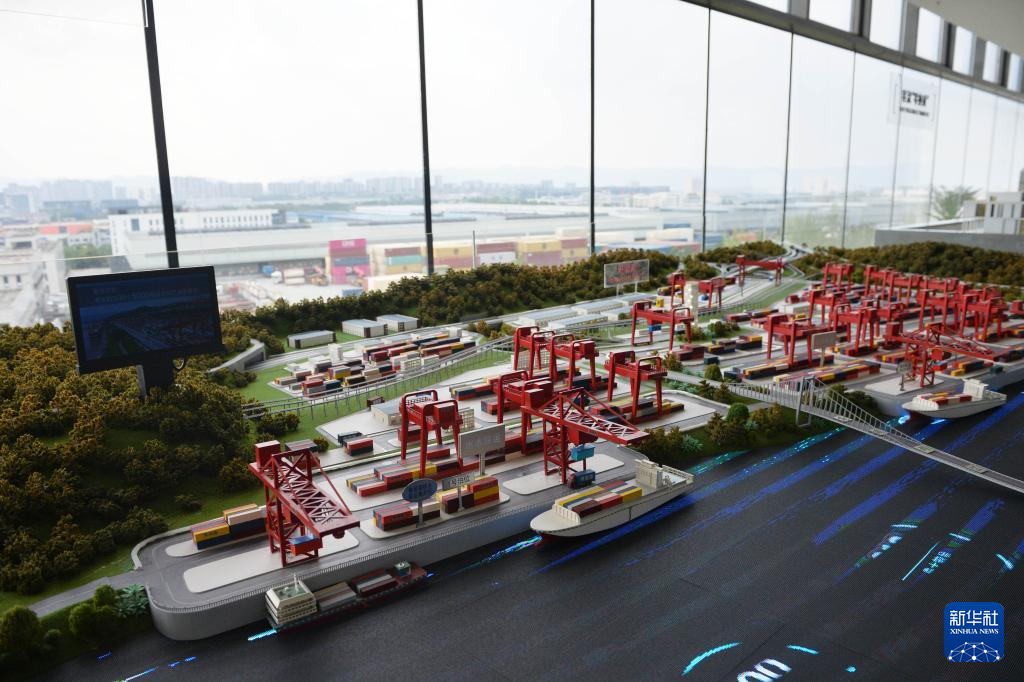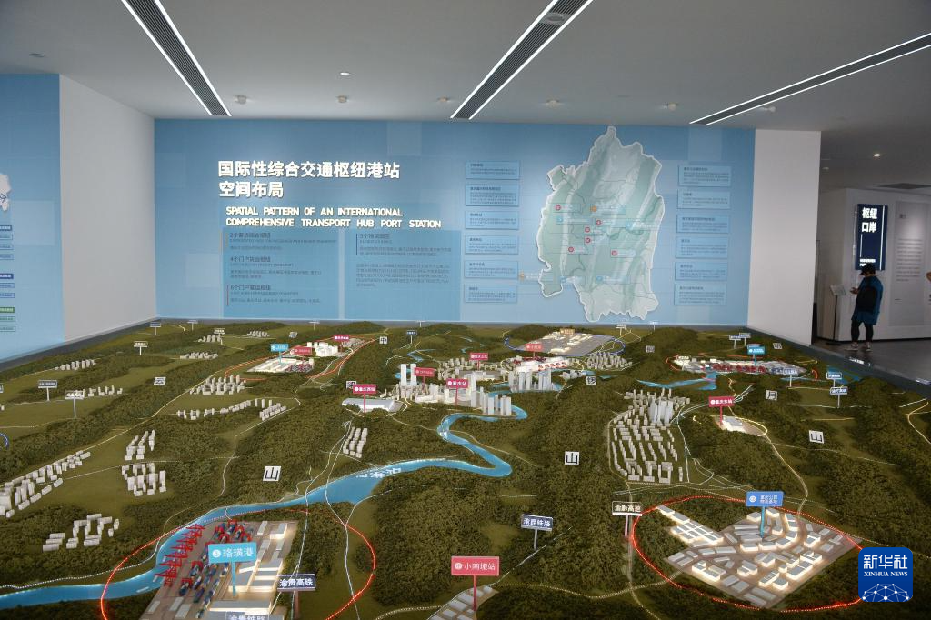 这是在重庆国际物流枢纽园区里的内陆国际物流枢纽展示中心拍摄的“果园港”模型(9月23日)。
