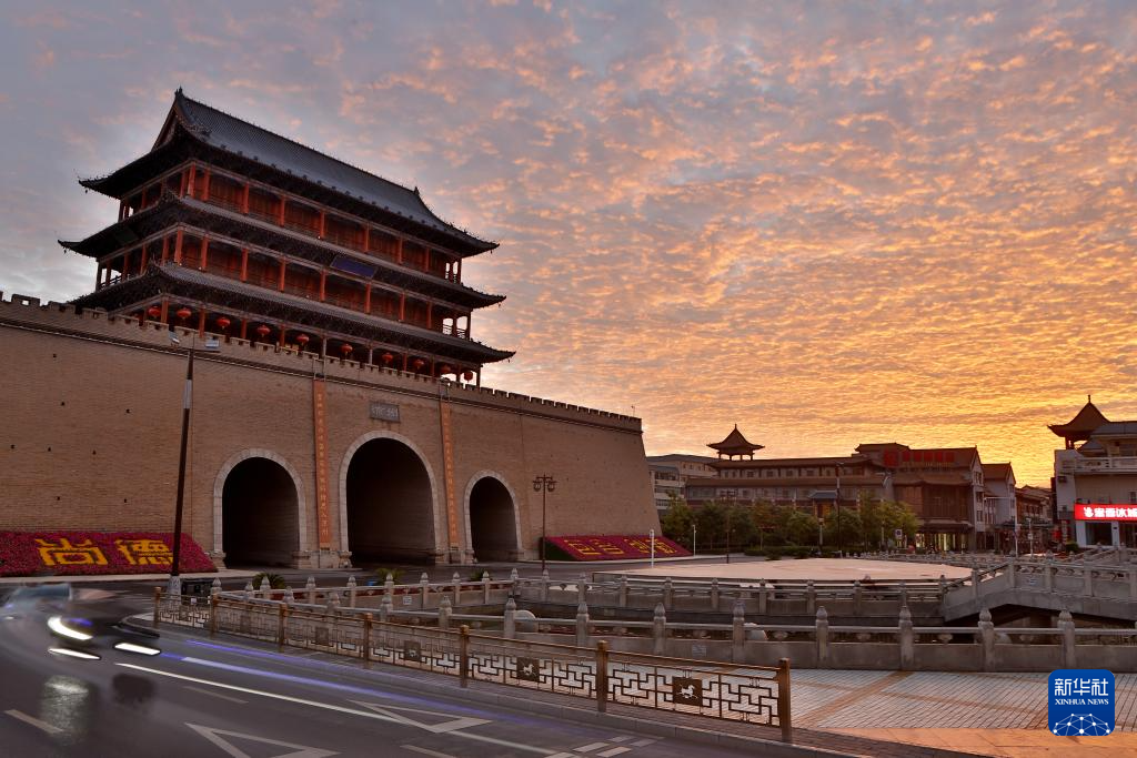 7月10日拍摄的武威南城门夜景(无人机照片)。