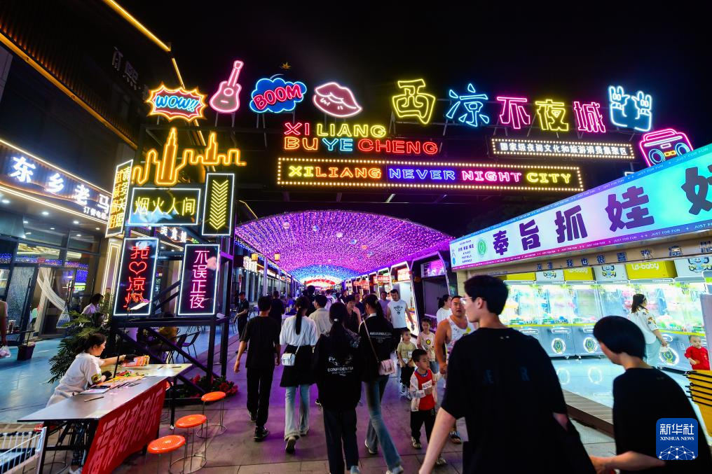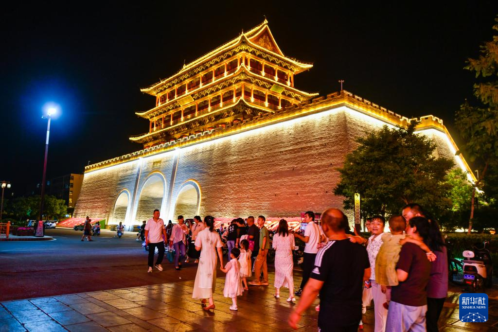 7月9日,游客游览武威“西凉不夜城”夜市。