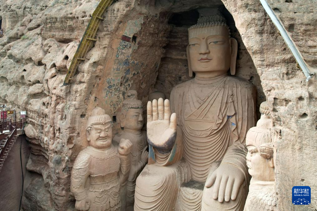 4月20日拍摄的武威天梯山石窟(无人机照片)。