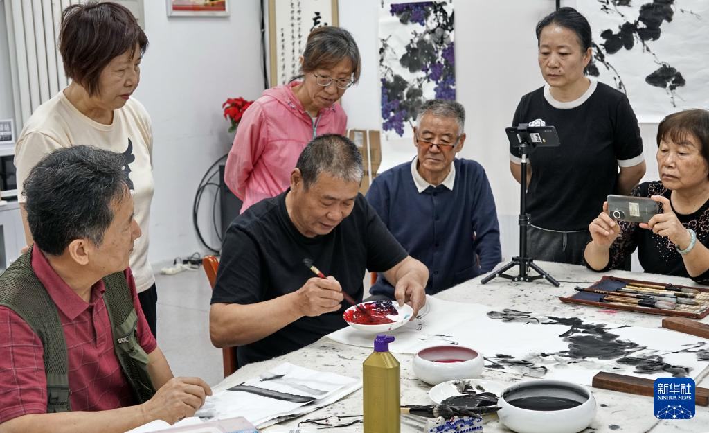 9月25日,老年人在珠江紫台社区的“老年课堂”学习国画。