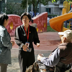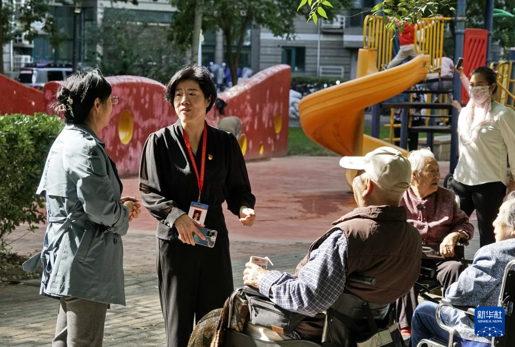 9月25日,珠江紫台社区党委书记吕秋玲(左二)在了解老年居民生活需求。