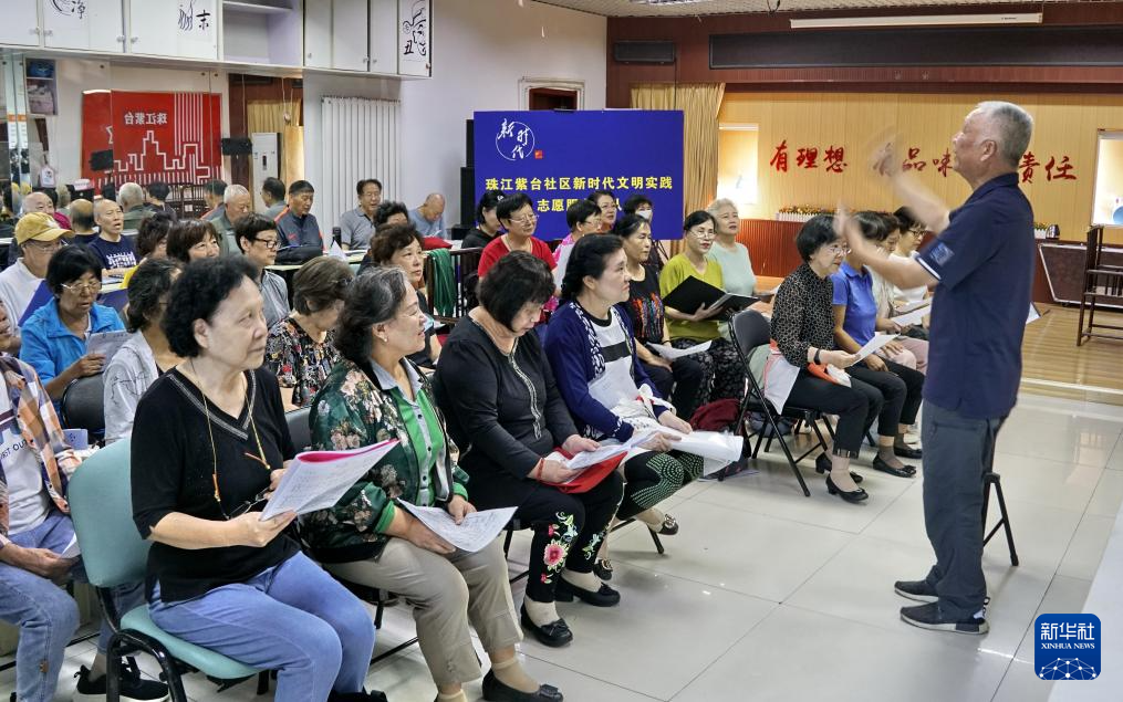9月25日,珠江紫台社区老年合唱团在排练国庆假期为居民演出的歌曲。