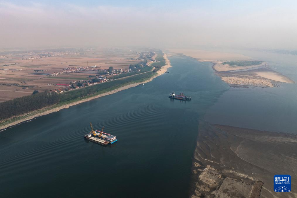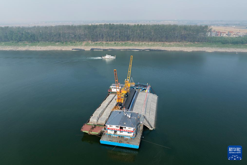 9月26日在湖北荆州瓦口子水道拍摄的工程施工现场(无人机照片)。