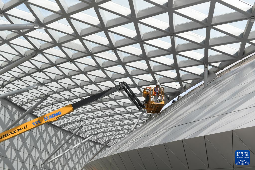 9月25日,深圳市盐田区小梅沙海洋世界,建筑工人在进行最后的修整。